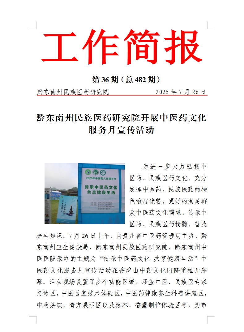 黔东南州民族医药研究院开展中医药文化服务月宣传活动