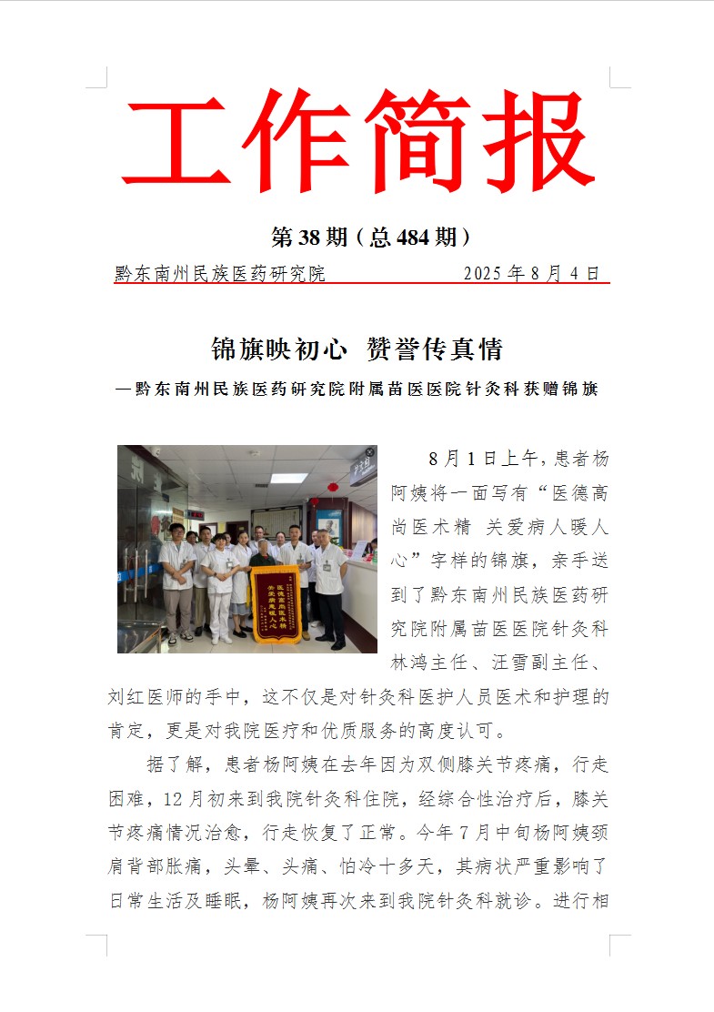 锦旗映初心 赞誉传真情 —黔东南州民族医药研究院附属苗医医院针灸科获赠锦旗
