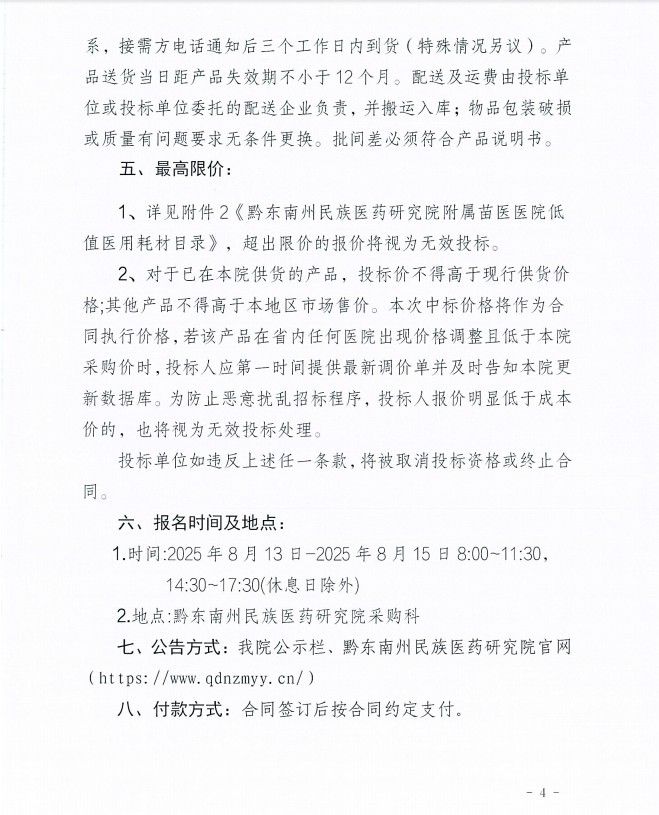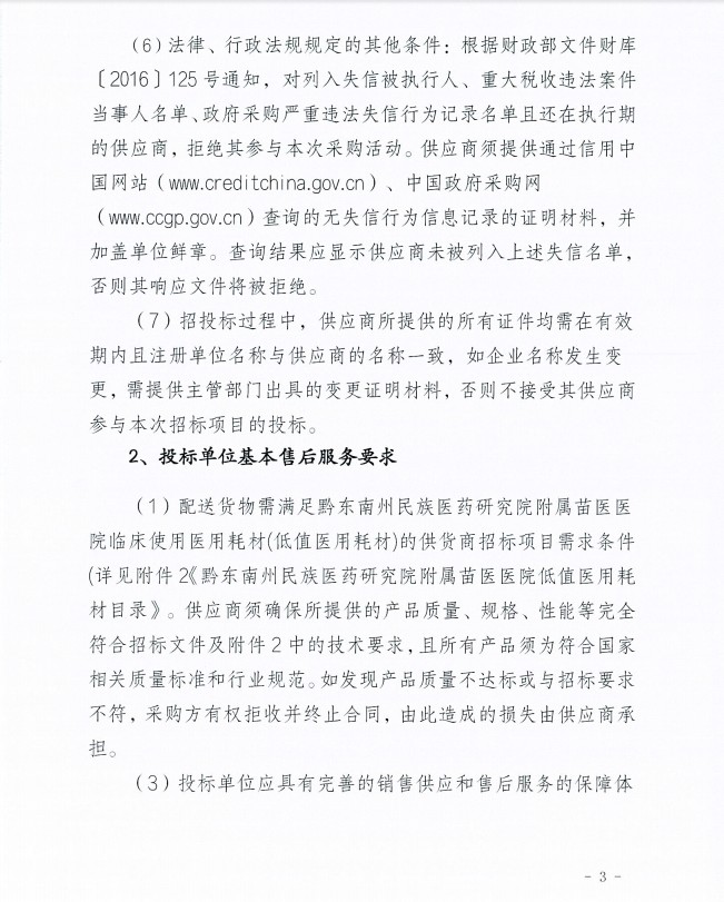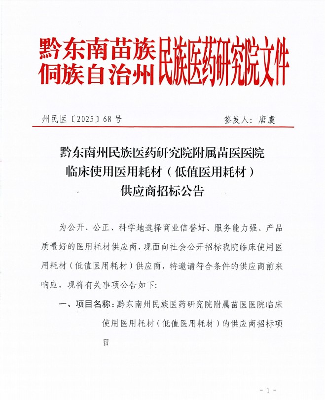 黔东南州民族医药研究院附属苗医医院临床使用医用耗材(低值医用耗材)的供应商招标项目公告