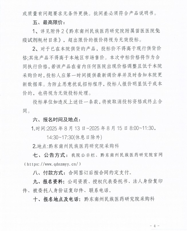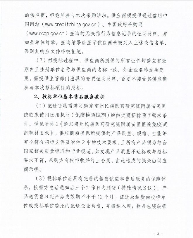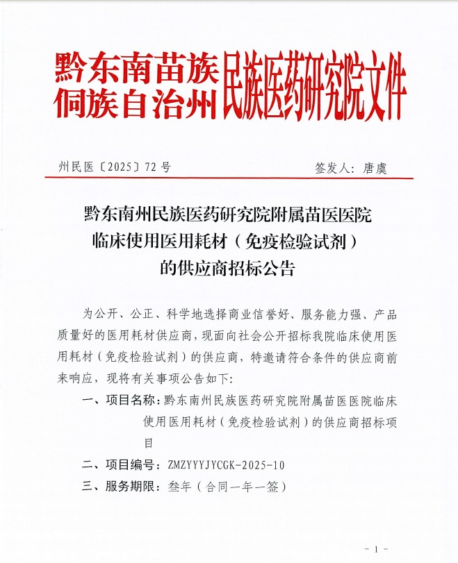 黔东南州民族医药研究院附属苗医医院临床使用医用耗材(免疫检验试剂)的供应商招标项目
