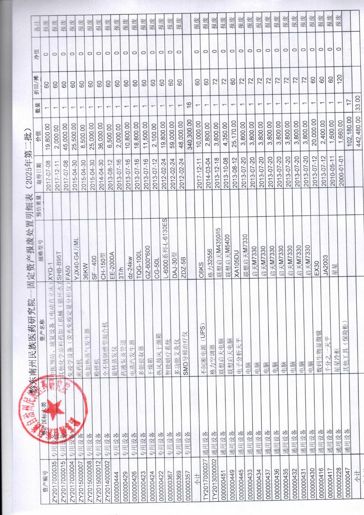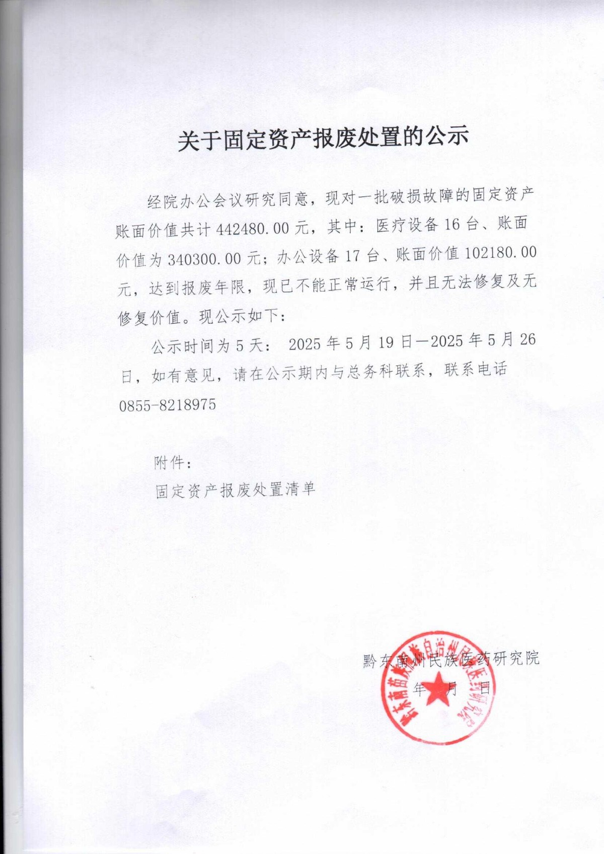 关于固定资产报废处置的公示(研究院)
