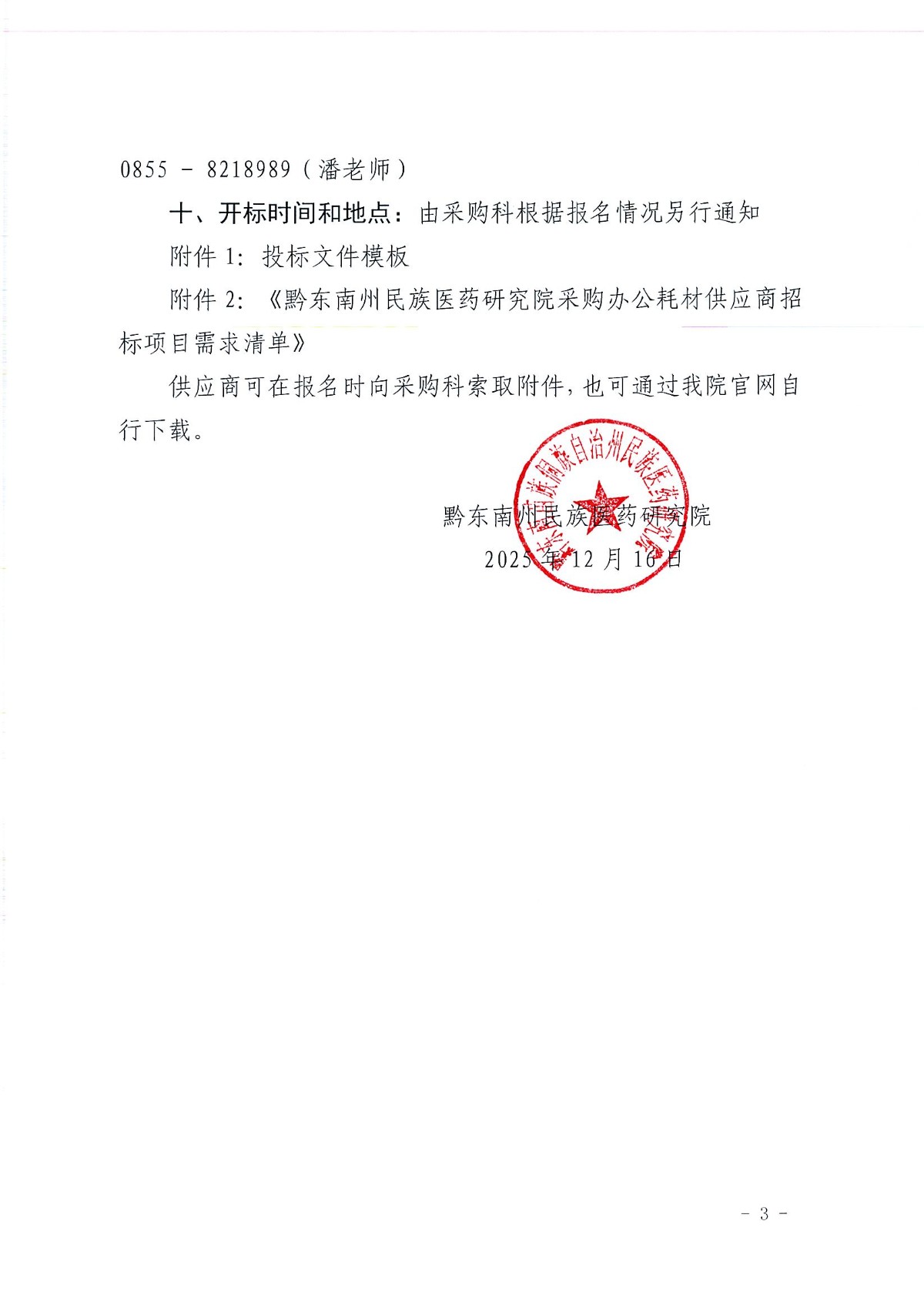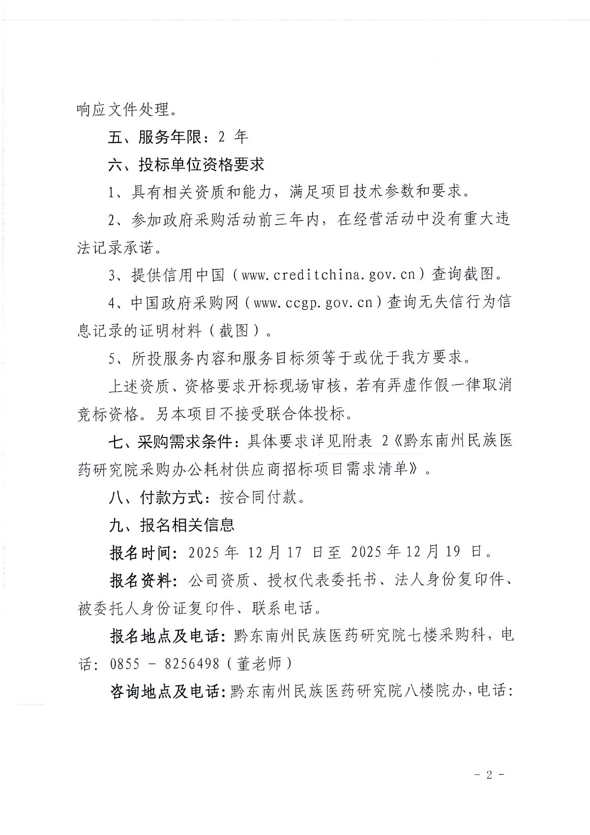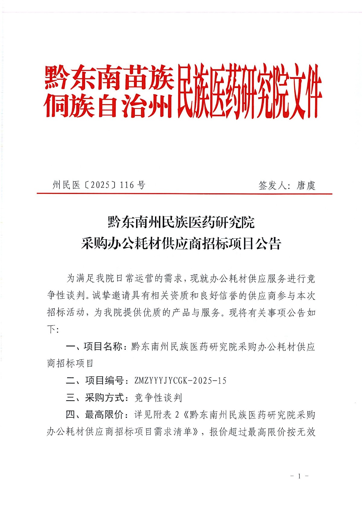 黔东南州民族医药研究院采购办公耗材供应商招标公告
