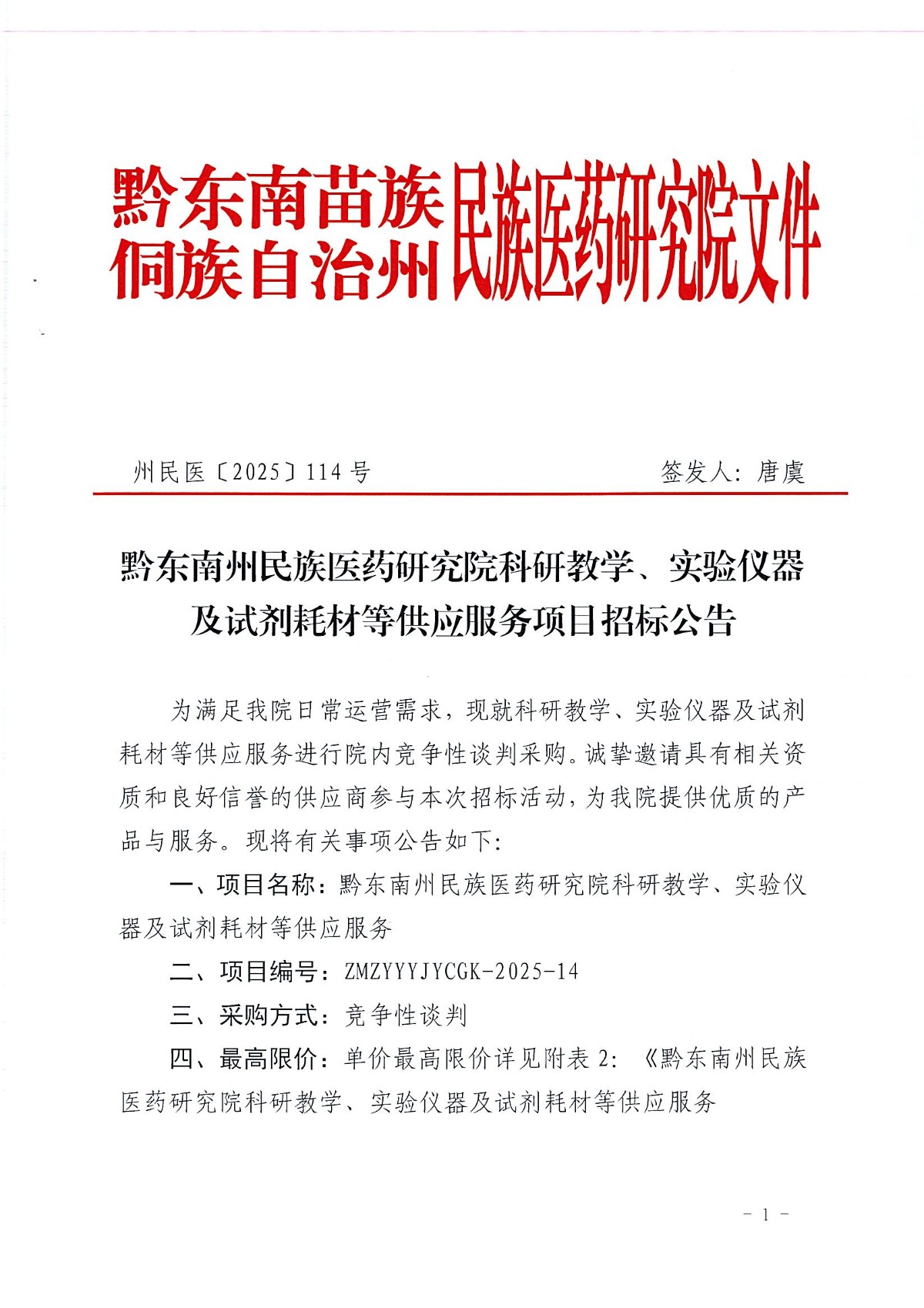 附件1:黔东南州民族医药研究院科研、实验仪器、试剂耗材等供应服务招标采购招标文件