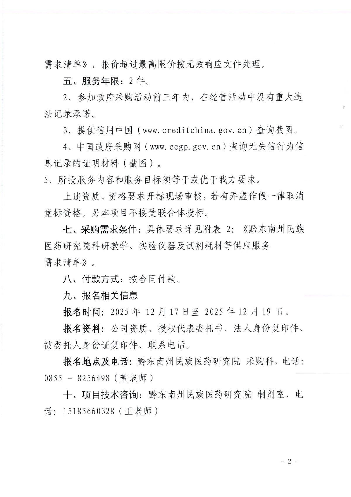 附件2:黔东南州民族医药研究院科研教学、实验仪器及试剂耗材等供应服务需求清单