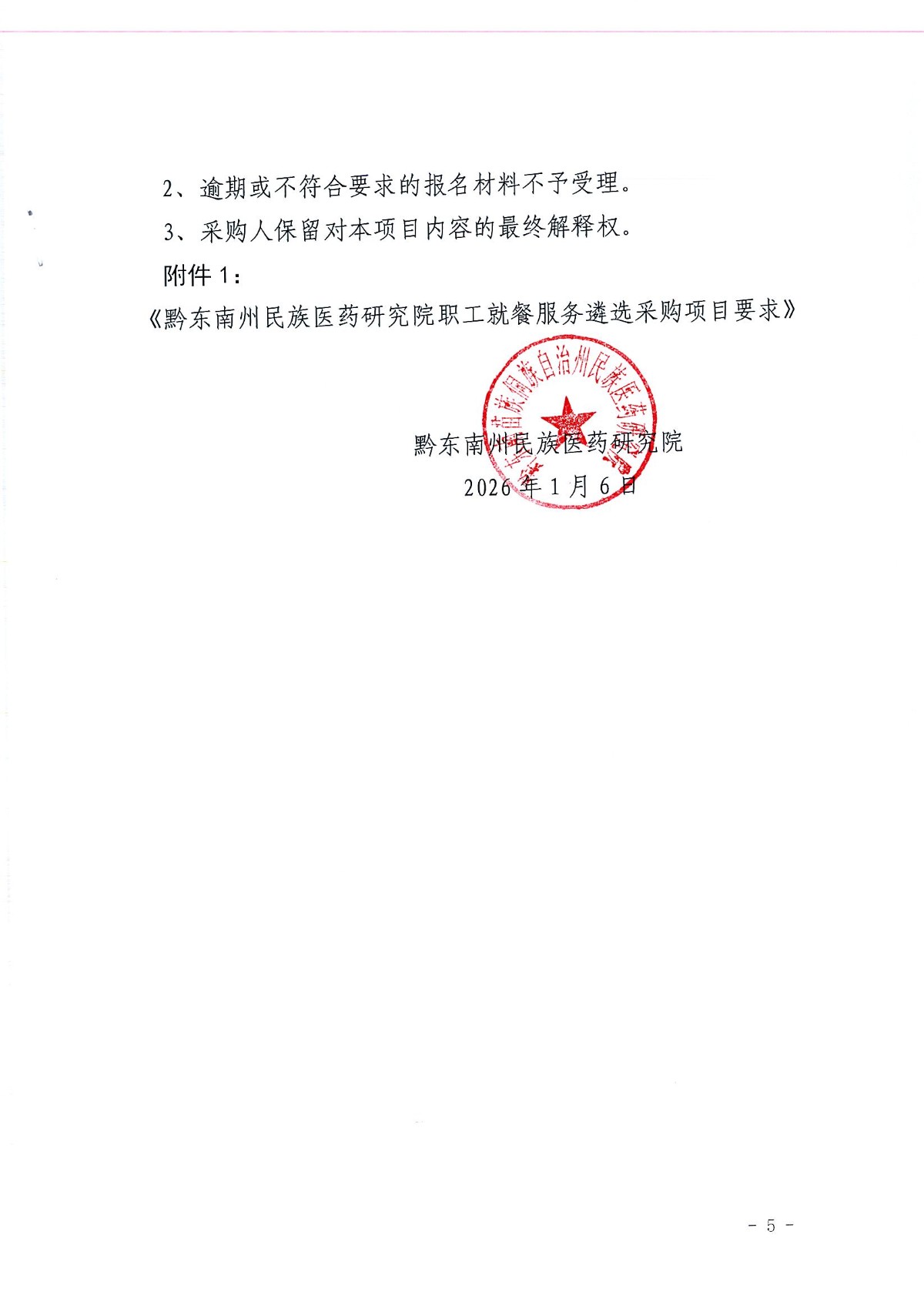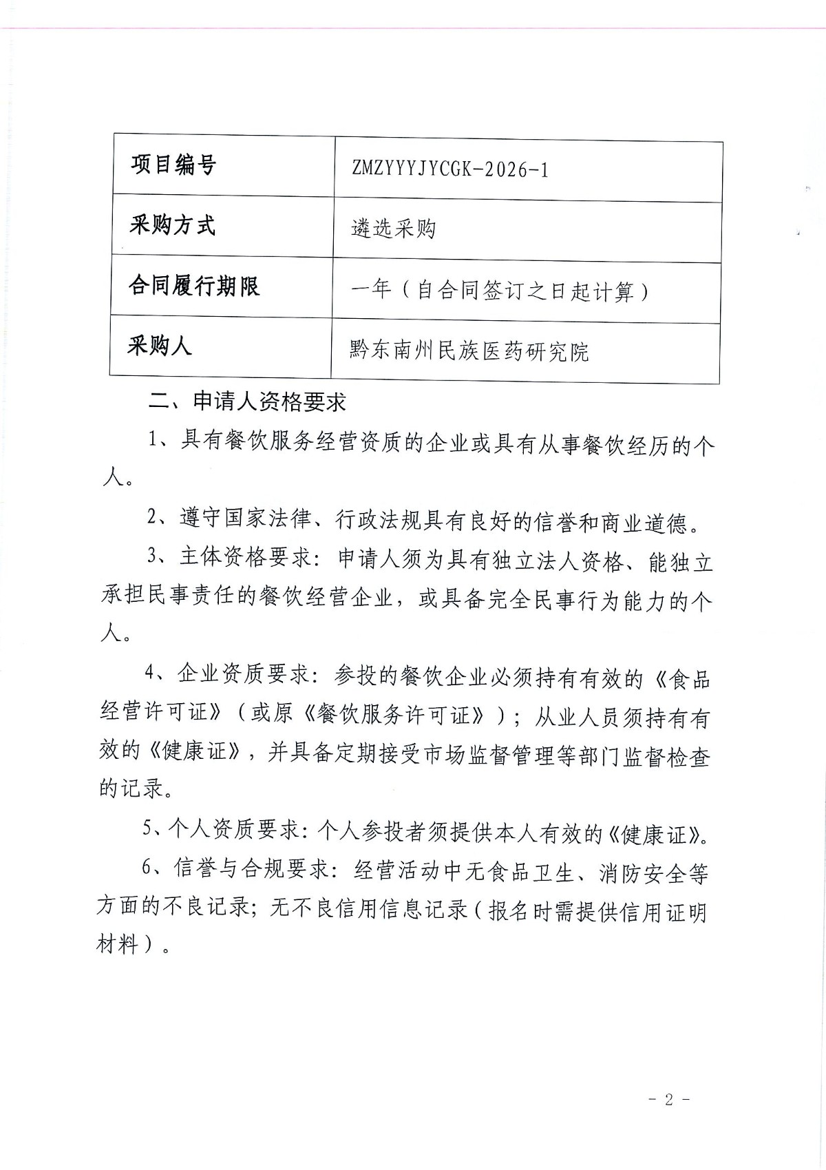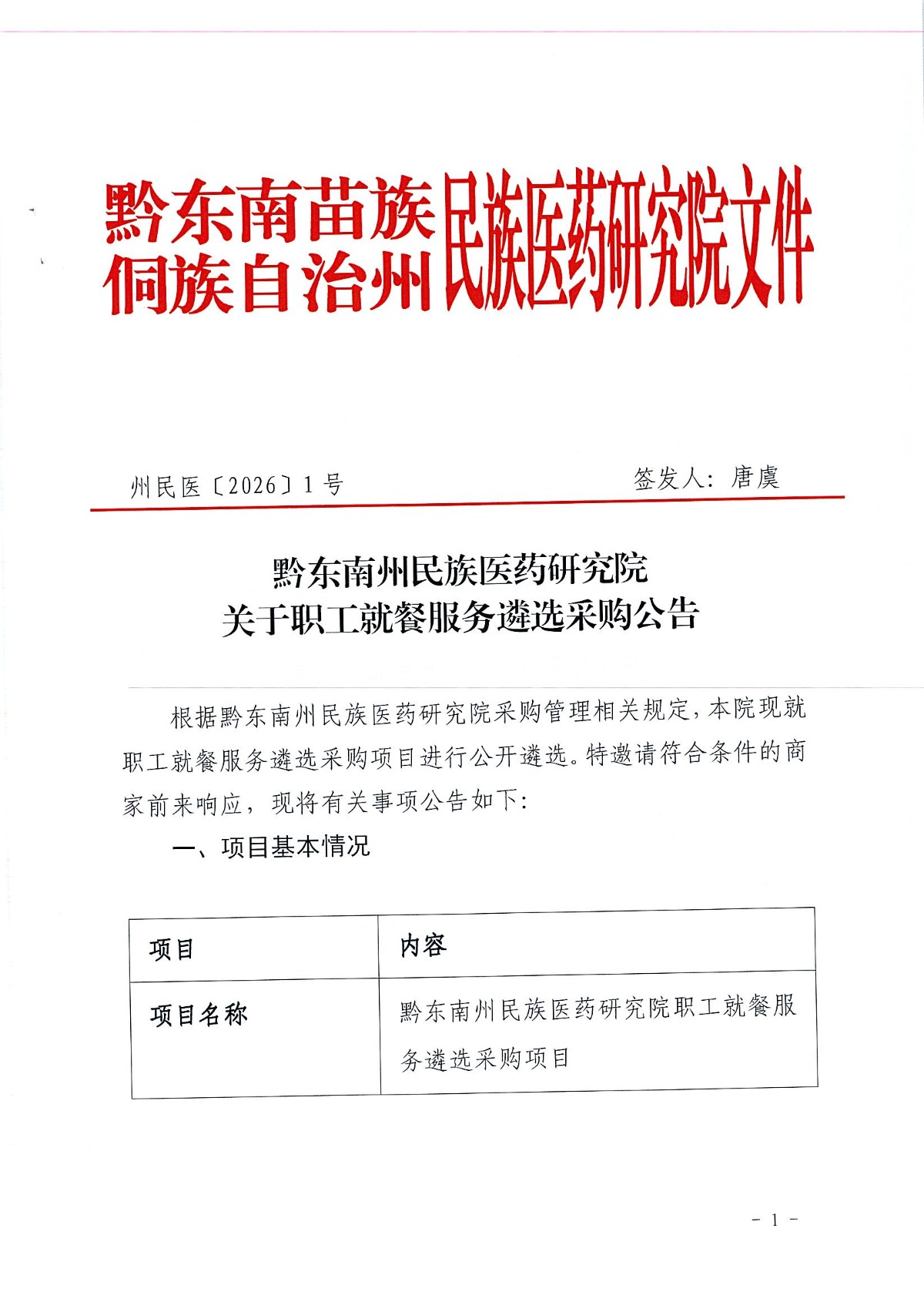 黔东南州民族医药研究院关于职工就餐服务遴选采购公告