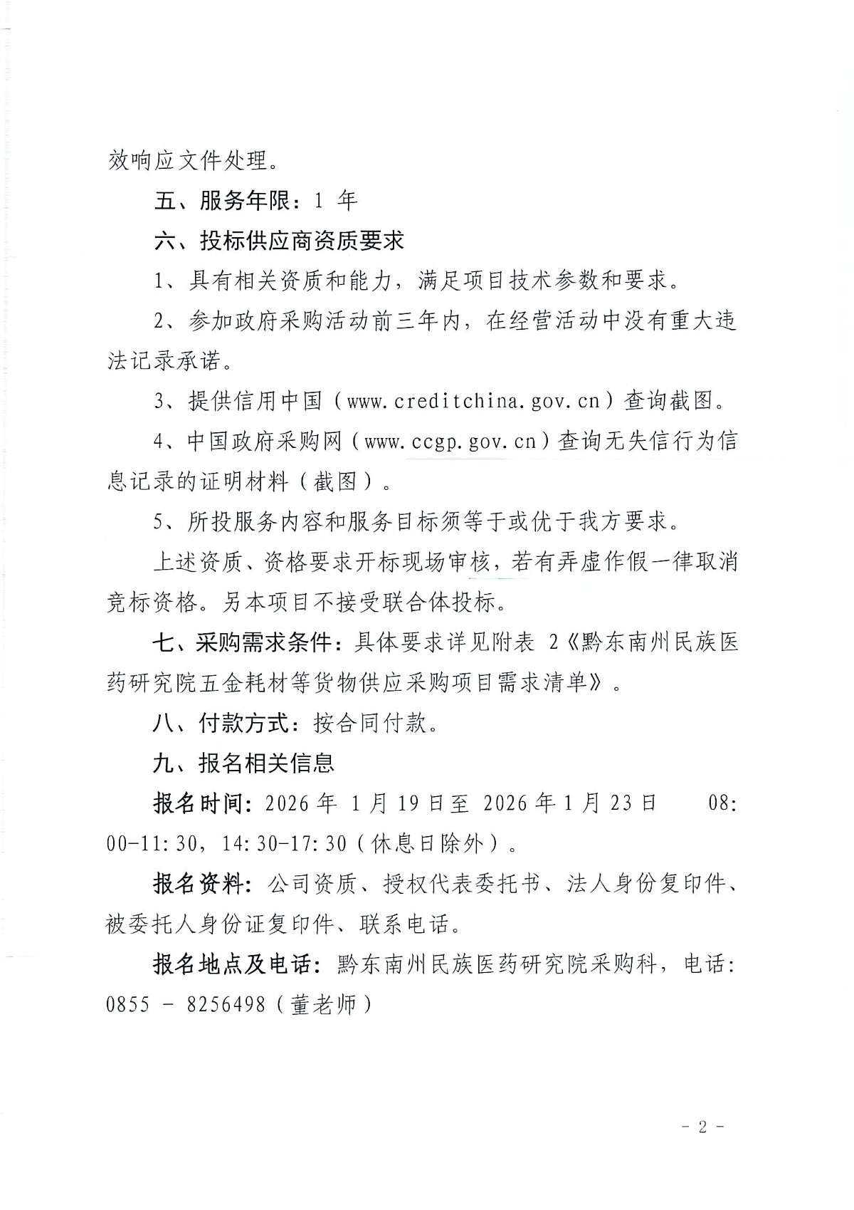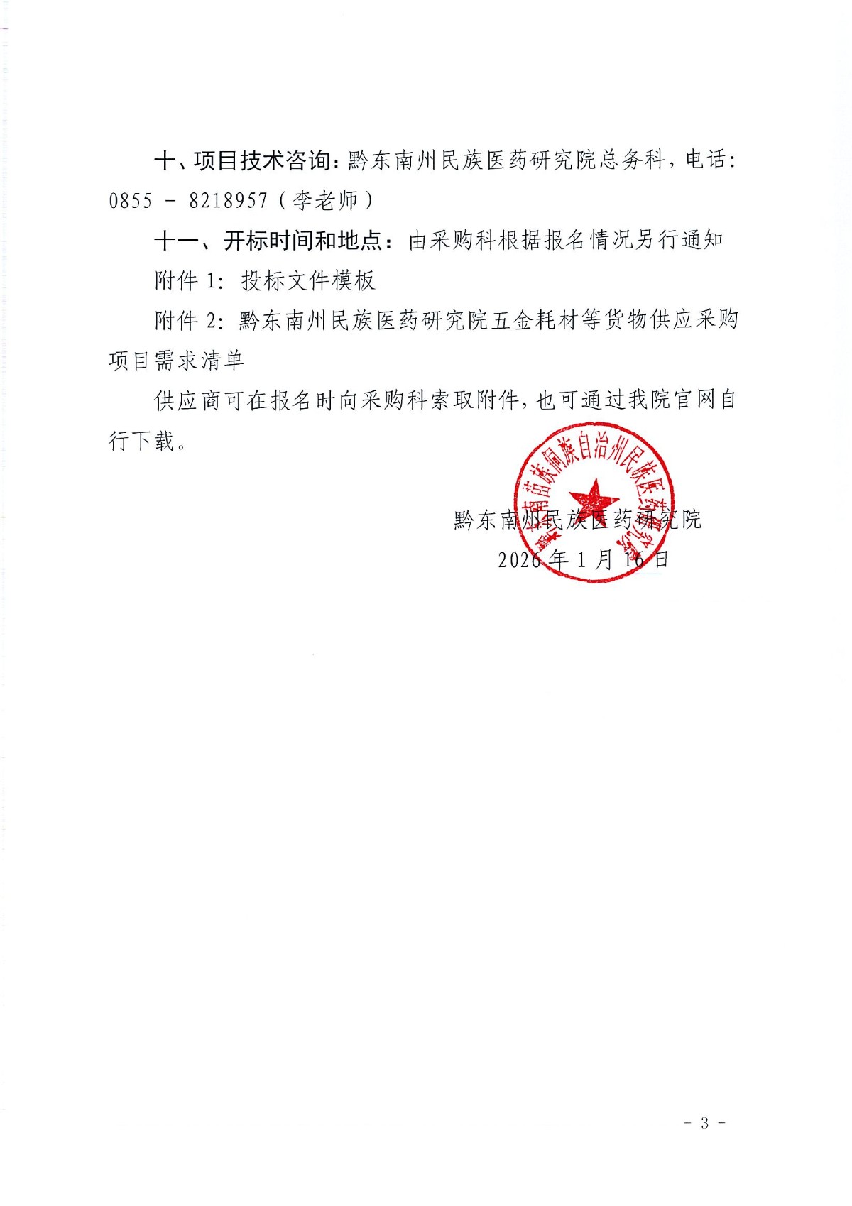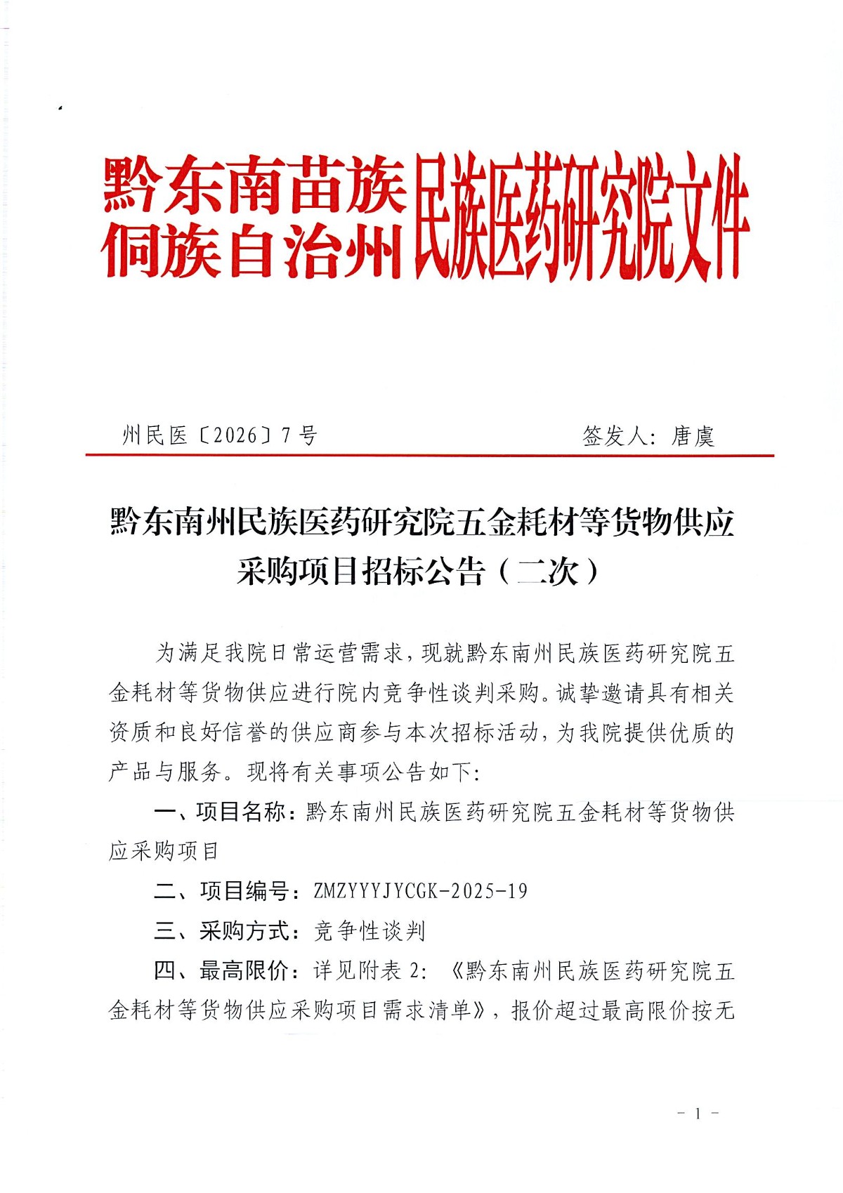 附件1:黔东南州民族医药研究院五金耗材等货物供应采购项目招标文件(二次)