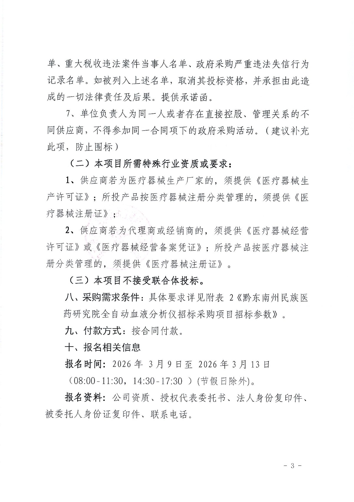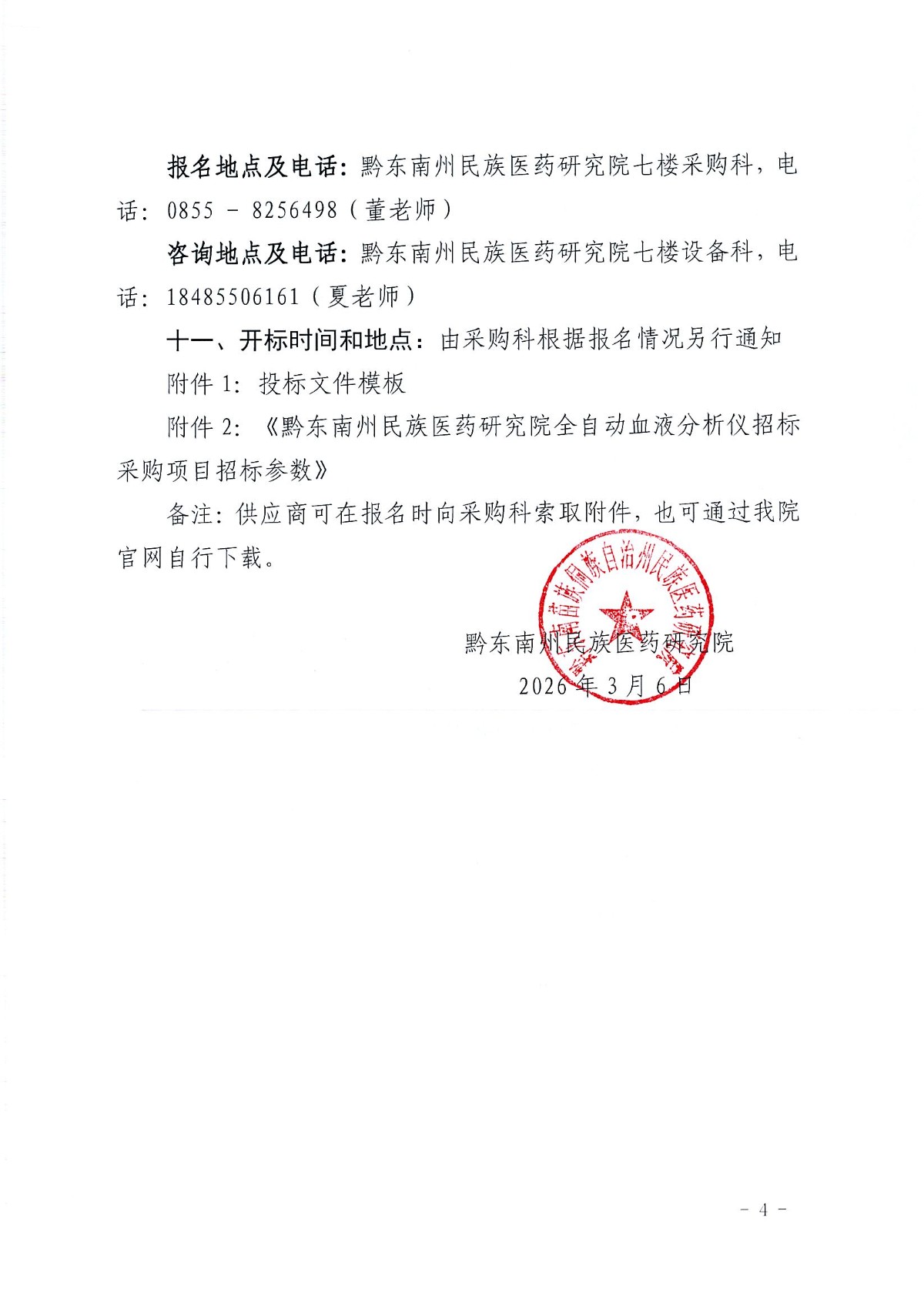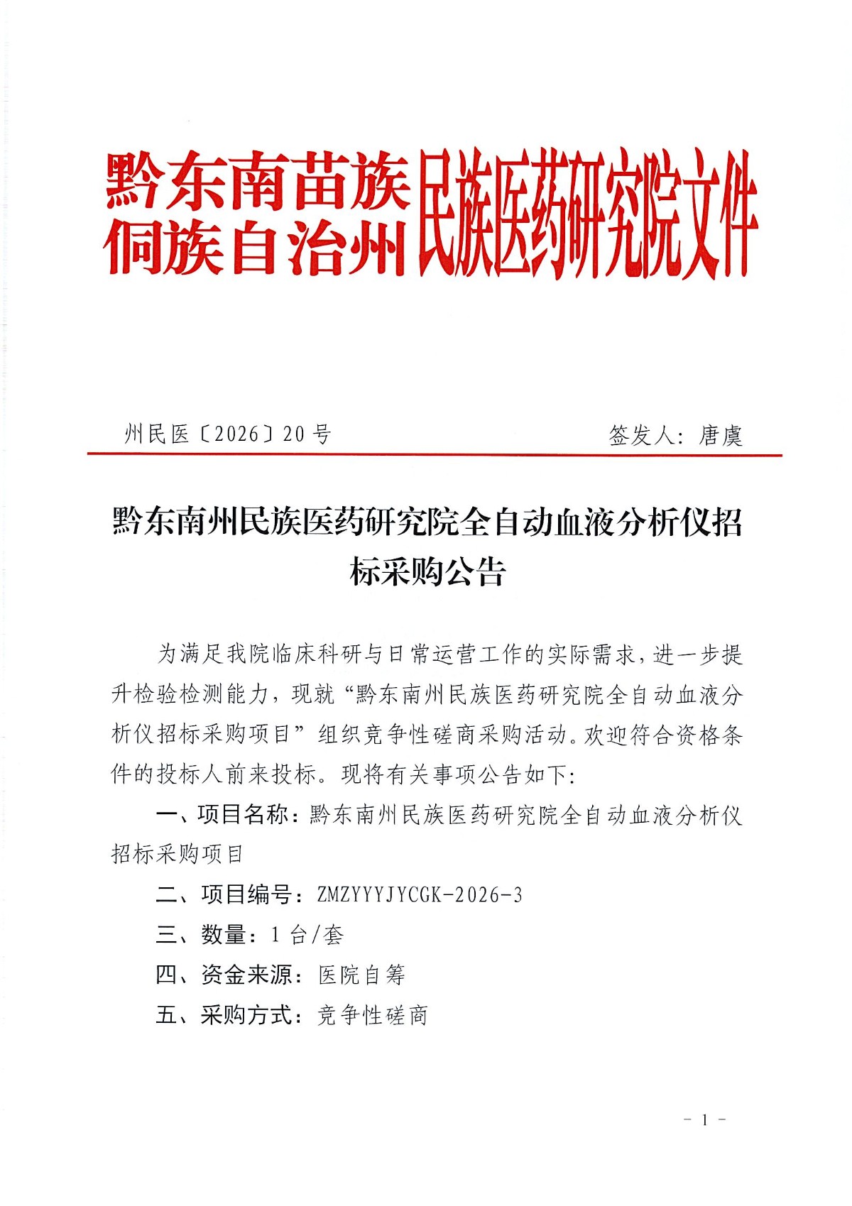 附件1:黔东南州民族医药研究院全自动血液分析仪招标项目招标文件